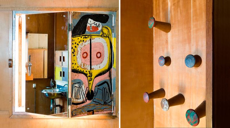 Auch die Innengestaltung ist allein sein Werk: funktionale raumsparende Holzmöbel mit einem WC, das, nur durch einen Vorhang abgetrennt, in den Wohnraum integriert ist. Eine Küche war nicht vorgesehen, da Le Corbusier immer bei seinem Freund Thomas Rebutato im direkt anschliessenden Restaurant Etoile de Mer sein Essen zu sich nahm.